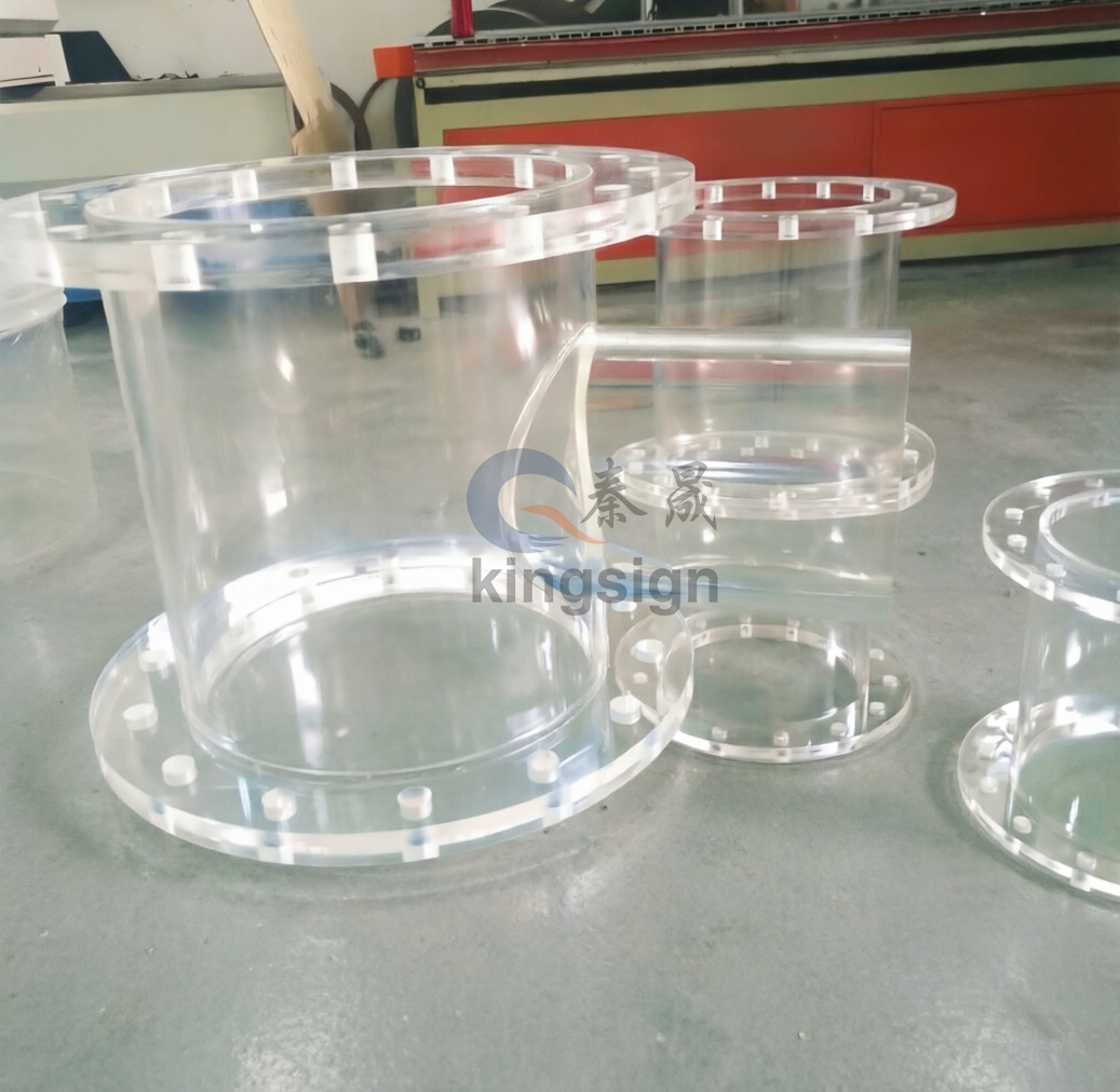 Бұл фланецті акрил құбырлары тәжірибелік зауыт жүйелерінде, оқу-зерттеу қондырғыларында, қоршаған ортаны бақылау жабдықтарында және мөлдірлік пен сенімділік маңызды болатын төмен қысымды сұйықтықты тарату жүйелерінде кеңінен қолданылады. Сізге стандартты өлшем немесе толығымен реттелетін шешім қажет пе, Kingsign операцияларыңызда дәйекті өнімділік үшін қатаң төзімділікпен жасалған акрил фланец компоненттерін жеткізеді.